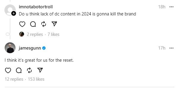 - La sincera respuesta de Gunn sugiere confianza en los beneficios potenciales de un año más ligero para las películas y programas de televisión de DC.