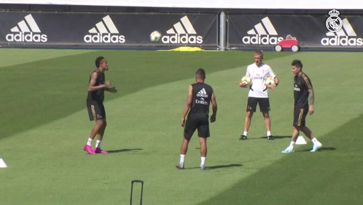 James Rodríguez se ejercita con sus compañeros del Real Madrid
