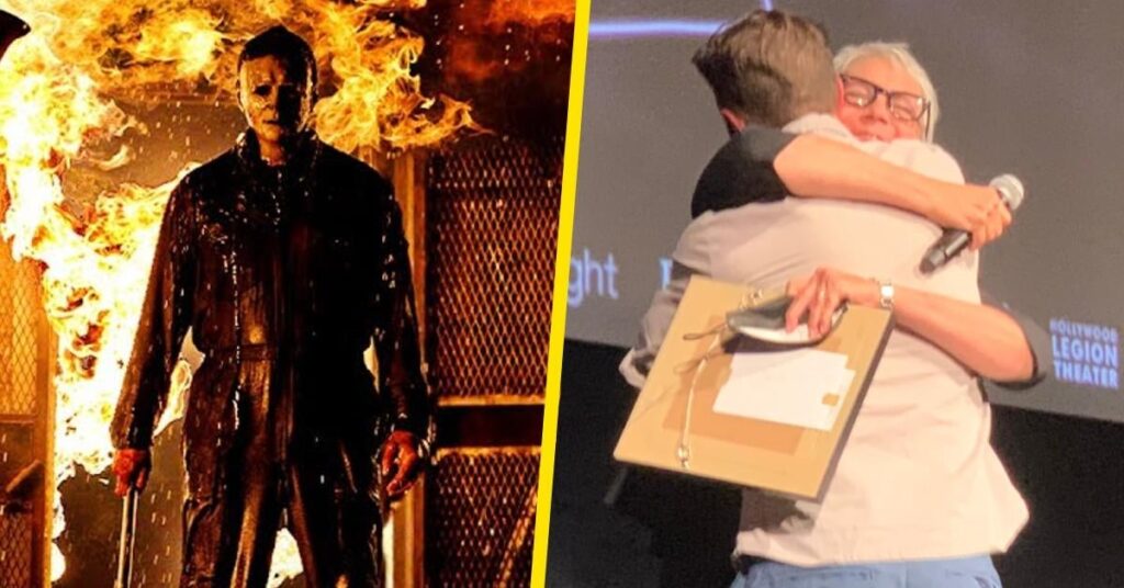 Curtis agregó: “Este correo electrónico es la razón por la que el nuevo Víspera de Todos los Santos las películas existen. Un correo electrónico, cinco años y un mes después, dos películas en la lata, una para filmar, cientos de millones de dólares, millones y millones de fanáticos después. Debido a ese correo electrónico, estamos aquí esta noche y les presento esto, David Gordon Green. Sin ustedes, no estaría aquí “. Debido a la hora tardía del evento, agregó en broma:” Y aunque no quiero estar aquí, y en realidad no quiero conocer a ninguno de ustedes, Quiero agradecerles desde el fondo de mi corazón porque sin ustedes, no tengo carrera y no podría amarlos más “.
