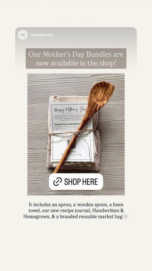 Janelle y su hija, Madison Brush, han invertido en Taeda Farmsuna marca de flores y estilo de vida aún no abierta cuyo lema es “construyendo belleza desde cero. “En honor al Día de la Madre, Janelle compartió que Taeda Farms está ofreciendo un paquete especial del Día de la Madre. Por $ 65, los compradores obtendrán un delantal de algodón 100%, una toalla europea de lino de lino, una bolsa de mercado personalizada y reutilizable y una digital “paquete de libros de cocina generacionales“Consistir en un libro de cocina familiar prejlado, plantillas personalizadas y recetas imprimibles, de acuerdo con Granjas de taeda.