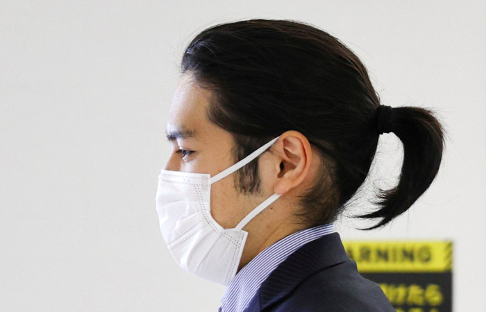 El prometido, que está matriculado en una escuela de derecho de Nueva York, voló a Tokio el lunes por primera vez en tres años, llevando el pelo largo atado como una cola de caballo, un estilo que suscitó comentarios en los programas de televisión del mediodía y la prensa sensacionalista.