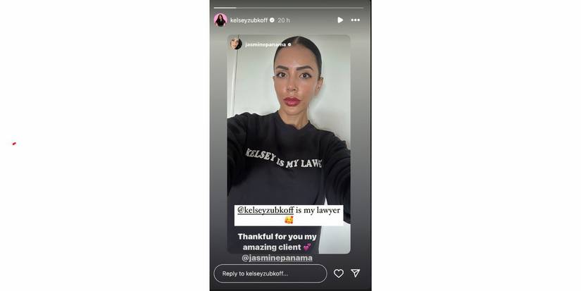 Jasmine publicó una selfie con una sudadera negra y el texto: “Kelsey es mi abogada.” Jazmín etiquetado @kelseyxubkoff en la historia de Instagram y escribió que ella es su abogada. Kelsey también volvió a publicar la historia de Instagram de Jasmine para confirmar que el Prometido de 90 días La estrella es su cliente. Ella añadió, “Gracias por ti mi increíble cliente.”
