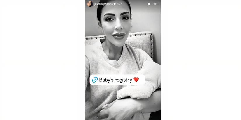 Jazmín Publicó una historia de Instagram con un filtro en blanco y negro. Si bien es común que ella comparta selfies en su página de Instagram, este era un poco diferente. Jasmine llevaba un suéter suelto y Mientras tomaba la foto con su teléfono usando una mano, sostenía un bebé en el otro. El bebé parecía llevar un suéter a juego como Jasmine mientras procedía a agregar un enlace a su registro de bebé, que es su enlace de la lista de deseos de Amazon. Sin embargo, todavía parecía que tenía un bulto de bebé en la imagen.