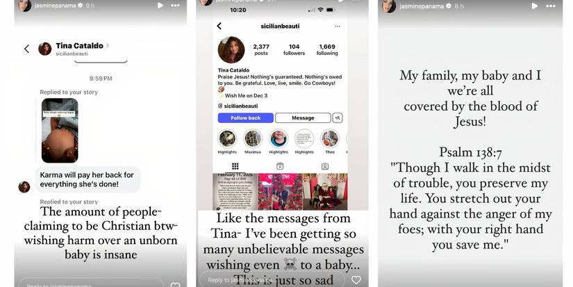 Jasmine dijo que ella ha estado recibiendo “Tantos” Mensajes increíbles como los que recibió de esta persona en particular. Agregó que algunos de ellos incluso desean la muerte a su bebé. Jasmine expresó lo triste que es para sus seguidores hacer algo tan molesto. “Mi familia, mi bebé y yo estamos cubiertos por la sangre de Jesús“Escribió Jasmine, antes de incluir el Salmo 138.7 en su historia.