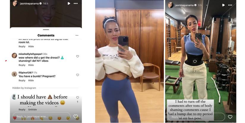 - Jasmine abordó los comentarios de vergüenza corporal desactivando los comentarios de Instagram y compartiendo su historia.