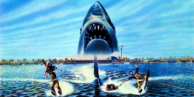 Universal no lo vio de esa manera, por lo que, a pesar de que Joe Dante fue perseguido como director y John Hughes coescribió el guión, la idea fue descartada. En cambio, el estudio optó por una secuencia sencilla en la que un gran tiburón blanco y su bebé quedan atrapados en SeaWorld Orlando y comienzan a comerse a los invitados. La película también hizo uso de un renacimiento de corta duración en 3D, que el Viernes 13 y amityville serie también hizo uso de. A pesar de su entorno creativo, la película recibió críticas horribles por su ritmo flojo y sus efectos visuales deficientes, como la infame escena final del tiburón atravesando un vidrio.