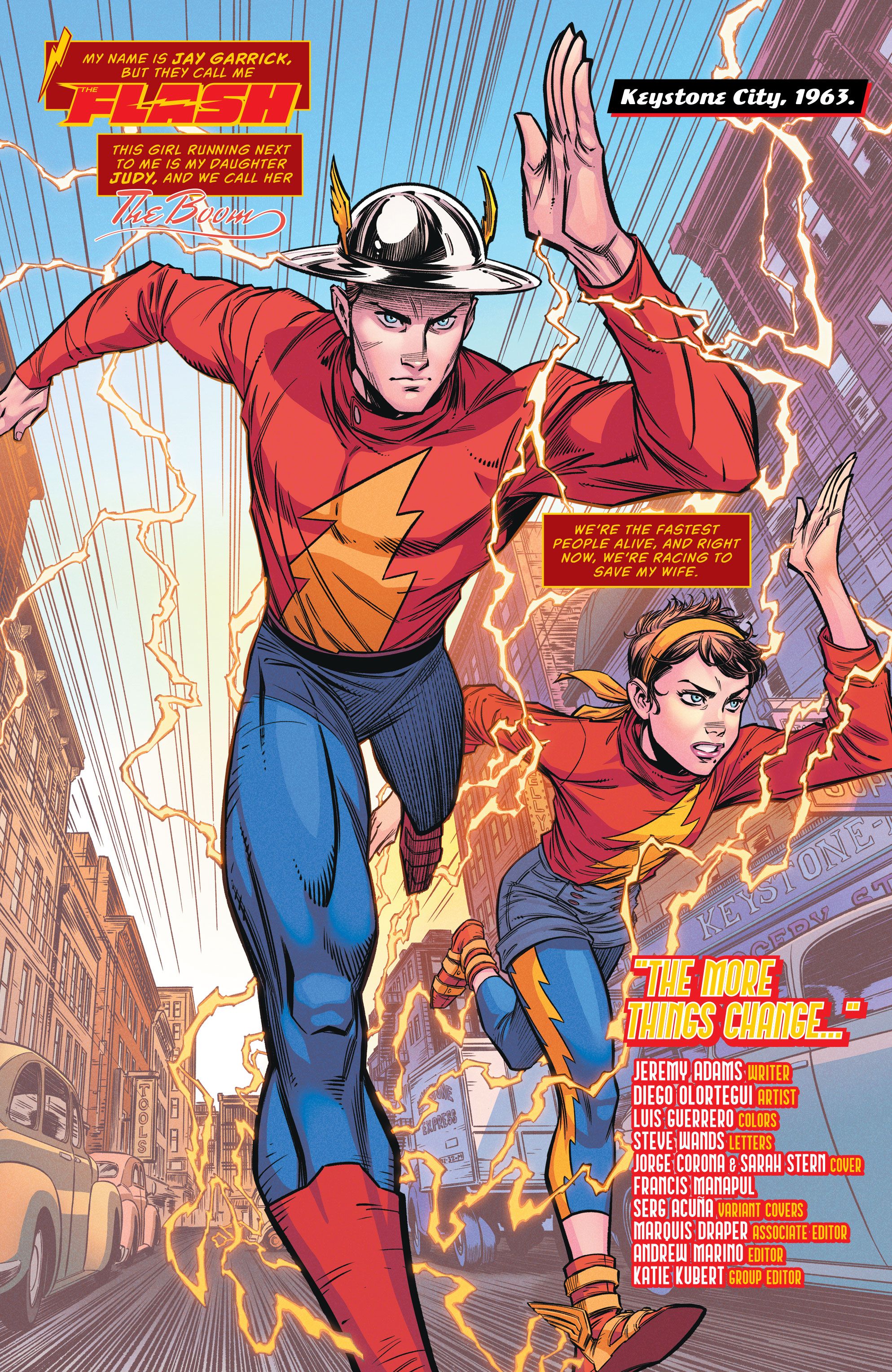 En Jay Garrick: El flash #1 Por Jeremy Adams y Diego Olortegui, Jay trae a Judy de regreso a casa por primera vez en años. Mientras Jay y Joan se readaptan para ser padres, Judy comienza a sentirse fuera de lugar en una época tan radicalmente diferente. Boom decide volver a la normalidad deteniendo un robo a un banco cercano, pero no se lo dice a sus padres, lo que hace que Jay y Joan entren en pánico. Mientras Flash le echa una mano a Boom, le recuerda a Judy que no puede irse sola. Pero la respuesta de Judy le recuerda a Jay a otra persona de su pasado que ha olvidado: un nuevo y siniestro villano llamado Doctor Elemental.