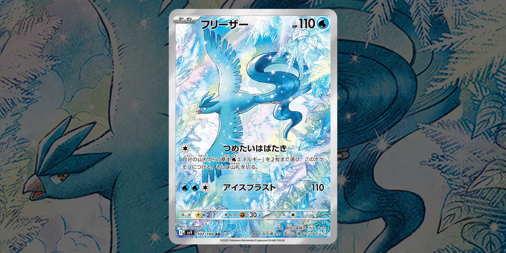 La ilustración de Kuromori resume perfectamente lo hermoso que puede ser Articuno a pesar de su inmenso y peligroso poder. El pájaro legendario aparece volando, con rayos de sol que ayudan a Ilumina el resplandeciente terreno cubierto de hielo. rodeándolo. Todo se combina para crear una tarjeta verdaderamente magnífica que cualquier coleccionista querrá conseguir lo antes posible.
