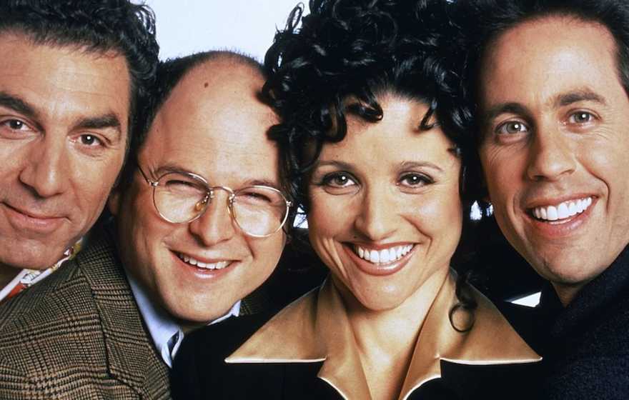 Seinfeld está protagonizada por Jerry Seinfeld como un comediante cuya vida en la ciudad de Nueva York se vuelve aún más caótica por su peculiar grupo de amigos que se unen a él para luchar con las preguntas más desconcertantes pero a menudo triviales de la vida. A menudo descrito como “un programa sobre nada”, Seinfeld extrae el humor de las situaciones mundanas de la vida, como hacer cola, buscar un objeto perdido o las pruebas y tribulaciones de las citas. La coprotagonista es Julia Louis-Dreyfus como la exnovia de Jerry y actual amiga platónica, Elaine Benes; Jason Alexander como George Costanza, el neurótico y desafortunado mejor amigo de Jerry; y Michael Richards como Kramer, el excéntrico vecino de Jerry.