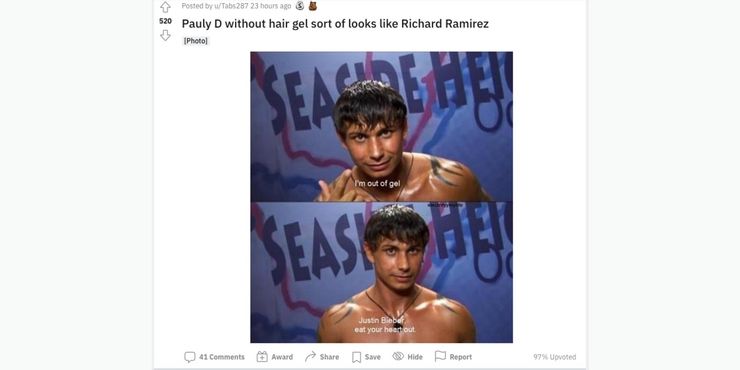 Durante el original La Costa de Jersey serie, Pauly D les dio a los fanáticos una rara mirada de cómo se veía sin él usando tanto gel para el cabello. La escena fue supuestamente tomada de las tomas descartadas que solo aparecían en los DVD originales. Las fotos de la escena han resurgido en Reddit, dejando a los fanáticos riendo y comparándolo con otras celebridades a las que se parece. En esta escena particular de La Costa de JerseyPauly D se comparó a sí mismo con el cantante de pop Justin Bieber. Dicho esto, un usuario de Reddit comparó a Pauly con el músico bielorruso-noruego Alexander Rybak, a lo que otros estuvieron de acuerdo. Otro comentario dijo que Pauly parecía alguien en el video musical de la canción “The Youth” de MGMT. Aunque no fue una comparación con otra celebridad, un usuario bromeó diciendo que esta nueva apariencia era el alter ego de Pauly D, un tipo llamado “Paul. “