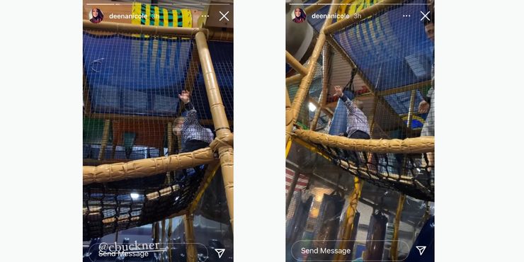 Deena les dio a sus seguidores una mirada al interior del complejo en el que se aloja el grupo. Parece que hay una zona de juegos para niños dentro del hotel. Deena publicó videos de su hijo CJ y su esposo Chris jugando en un patio interior con temática de albergue.