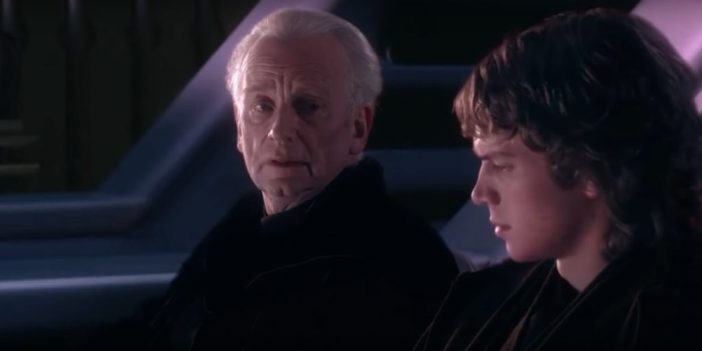 En Star Wars: Episodio III – La venganza de los Sith, hay una escena en la que Palpatine habla con Anakin sobre los Jedi y los Sith. Según Palpatine, los dos no son tan diferentes, ya que los Jedi también buscan obtener un mayor poder. En este punto, Palpatine no había revelado su verdadero yo a Anakin, pero esta escena era un puente fundamental. Pronto se discutió la historia de Darth Plagueis, un señor Sith con el poder de evitar que las personas mueran. Después de la historia, Anakin pregunta si uno puede aprender el poder. La respuesta de Palpatine es que no se puede aprender de un Jedi. No pasaría mucho tiempo después de esta escena que Palpatine revelaría su verdadera identidad y luego le daría a Anakin el nombre de Darth Vader.