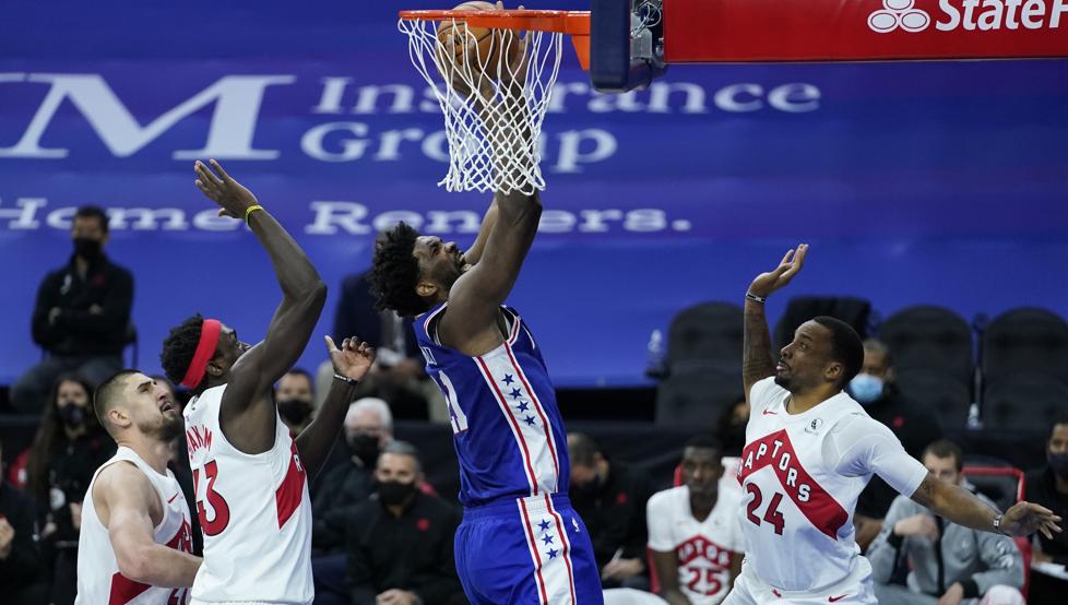 Joel Embiid anotó 29 puntos y atrapó 16 rebotes para conducir a Philadelphia 76ers a superar a los Toronto Raptors 100-9. Un parcial de 18-6 en los últimos cinco minutos y medio resultó providencial para el equipo estadounidense.