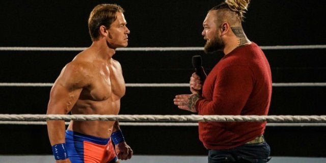 La escena fue recreada expertamente, con Wyatt incluso trayendo de vuelta el viejo puño de SmackDown que el show solía tener en el escenario de entrada. Pero el equipo que Cena terminó usando no coincidía exactamente con los baúles y botas rojos y negros que llevaba la primera vez. En cambio, el equipo era azul y naranja, que resulta ser del mismo color que el X-O Manowar de Valiant Comics. Y por suerte, se rumoreaba que Cena estaba en la carrera por el papel protagonista en la potencial adaptación cinematográfica tan recientemente como la semana pasada.