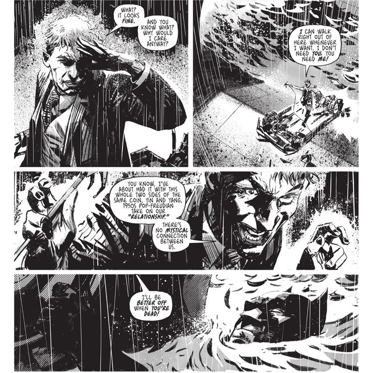 Mientras hombre murciélago y bufón han sido considerados durante mucho tiempo como la dinámica de superhéroes y villanos más codependiente de DC Comics, donde uno deriva una gran parte de su propósito de oponerse al otro, Joker recientemente frenó este psicoanálisis. En términos inequívocos, descarta al Murciélago como una mera molestia, y ya especula sobre cómo cambiarían sus diseños y mejoraría su fortuna si el Mejor Detective del Mundo fuera de escena. Esto muestra una autonomía de propósito que convierte en broma la noción de que Joker solo existe como contraste de Batman.