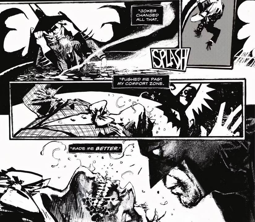 Mientras visita al Joker en la morgue, después de asegurarse de que el Joker está realmente muerto, Batman se va después de agradecerle al Joker por empujarlo a ser más. Batman originalmente se propuso ser un símbolo de justicia y terror., pero las amenazas cada vez mayores del Joker tanto para Gotham como para el mundo obligaron a Batman a convertirse en un mejor héroe para seguirle el ritmo. Este crecimiento finalmente llevó a Batman a unirse a la Liga de la Justicia, donde a menudo salva el Multiverso. Nada de esto hubiera sido posible sin que el Joker obligara a Batman a intensificar sus acciones como héroe, y parece que Batman realmente aprecia al Joker por esta extraña rivalidad.