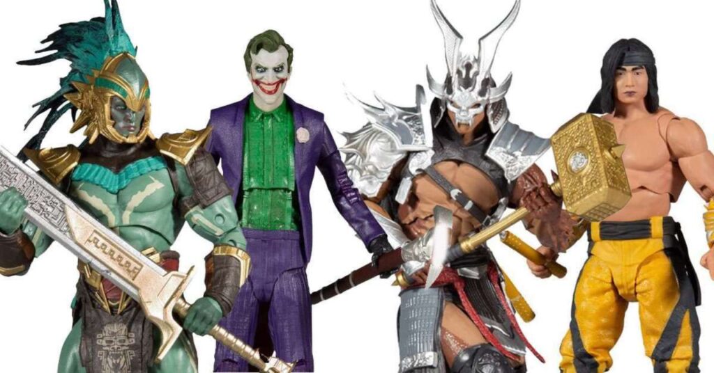 Cada una de las nuevas figuras MK11 McFarlane Toys presenta más de 22 puntos de articulación, accesorios y una base de exhibición. Más específicamente, el Joker viene con un bastón y un cuchillo, Kotal Kahn viene con la espada Macuahuitl, Liu Kang viene con dos pares de manos y nunchucks, y Shao Kahn viene con un martillo.