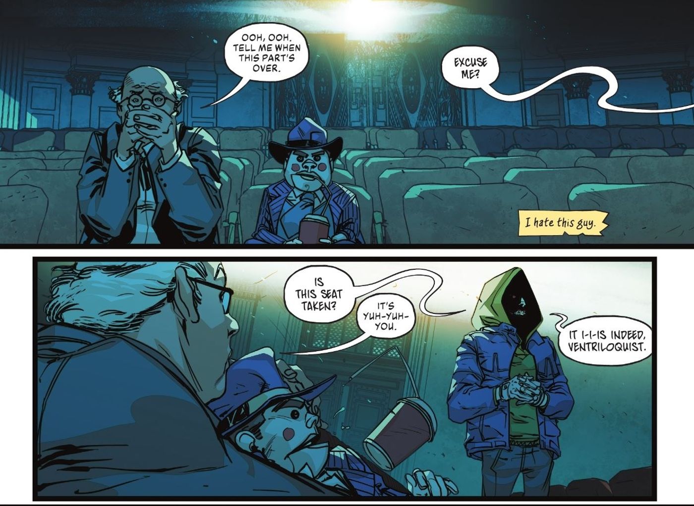 En extrema necesidad de un ejército, el Joker comienza una campaña de reclutamiento y comienza a buscar a cualquiera que pueda traer a su lado. El primer lugar al que va es a un cine en el barrio chino de Gotham donde encuentra a Arnold Wesker, el ventrílocuo, viendo una película con su muñeco, Scarface. A medida que se acerca al villano, el Guasón se da cuenta de cuánto odia al ventrílocuo y comenta lo humillante que es ser amenazado por un títere con una pistola.
