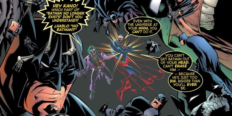 Esto hace que la confianza del Joker vacile, robándole su poder y salvando la realidad de su destrucción. Después de todo, si ni siquiera podía borrar a un humano, no había forma de que pudiera borrar toda la realidad. Los fanáticos saben cuán obsesionado está el Joker cuando se trata de Batman, pero esto lleva su codependencia a un nivel universal. Incluso como dios, realmente no puede funcionar sin su mayor enemigo allí para actuar como control y equilibrio. El Joker sabe que su universo no tiene sentido sin un Batman al que enfrentarse; de lo contrario, lo habría matado desde el principio.