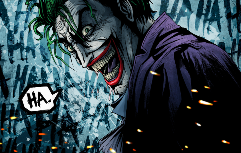 El Joker es un cerebro criminal psicópata con un retorcido sentido del humor. Inicialmente presentado como un asesino en serie despiadado, el personaje evolucionó con el tiempo, oscilando a menudo entre un bromista y un maníaco homicida. Su relación con Batman es una de las más complejas en la historia del cómic, definida por su obsesión mutua. A lo largo de las décadas, el Joker se ha convertido en un icono perdurable del caos y la locura, que encarna la antítesis del orden y la justicia de Batman.