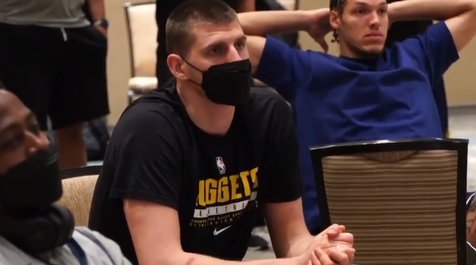 Jokic, elegido ganador de este año, recibió la noticia en medio de una charla técnica de su equipo, con los jugadores centrados en el discurso del entrenador y en la pantalla de vídeo.