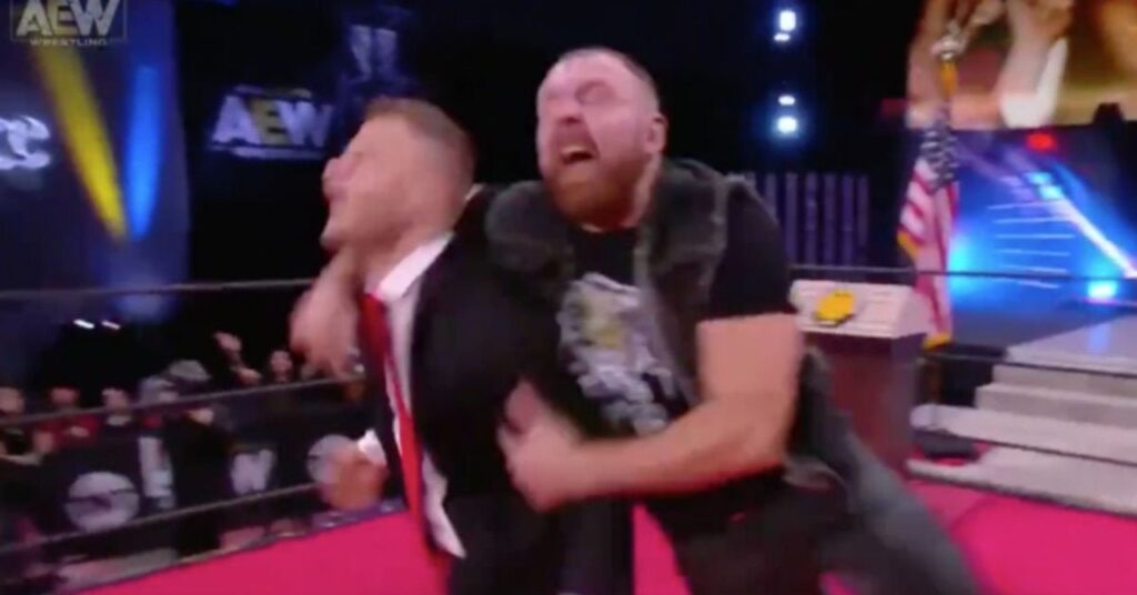 MJF apareció en AEW Dynamite de esta semana para hacer otra promoción de campaña sobre Jon Moxley, pero esta vez terminó pagando por ello. Friedman una vez más llamó a Moxley “Dictador Jon” y dijo que debería ceder el premio mayor de AEW a alguien que sea mejor luchador que él. Incluso llegó a tumbarse en el suelo y cortar el resto de su promoción en la espalda. Una vez que terminó, la música de Moxley golpeó, y Friedman se puso de pie y ordenó a Wardlow y su equipo de campaña que le impidieran caminar por las gradas.