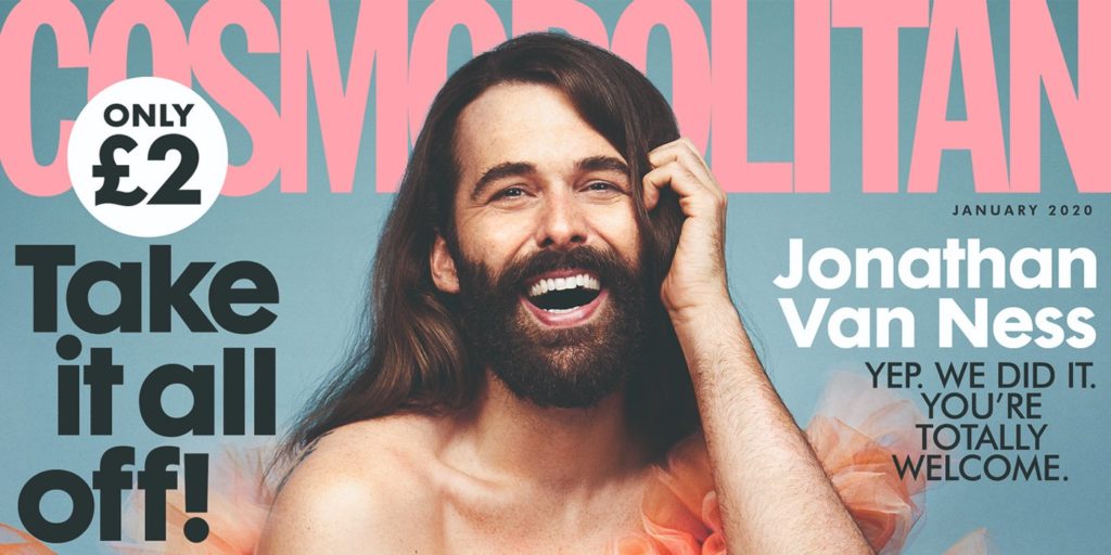 Jonathan Van Ness de Ojo raro es el primer no femenino en Cosmopolita del Reino Unido cubrir en más de tres décadas. La portada está siendo elogiada por su audaz exhibición de belleza no binaria y vanguardia de la moda.