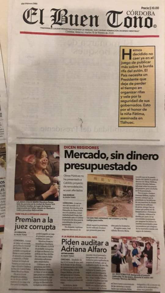 Miren este periódico, El Buen Tono, de Córdoba, Veracruz. Su dueño tiene una mueblería del mismo nombre. Se llama José Abella y es un tipo peligroso.
