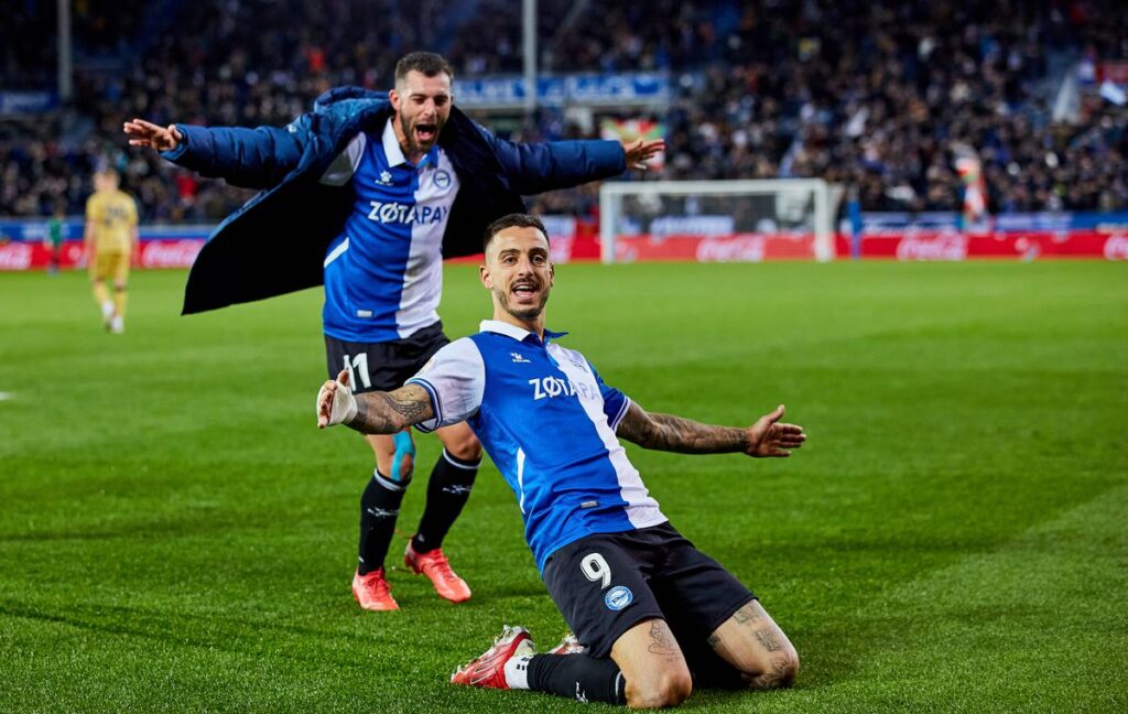El fútbol es un tobogán de emociones. Que se lo digan a De Frutos, que marcó un golazo en la primera parte, que le daba vida y esperanza a su equipo, el Levante, y que cuando el partido transcurría anodino, sin sustancia, camino de la irrelevancia, fue el autor de un penalti absurdo que convirtió Joselu y dio alas al Alavés. El equipo de Calleja acabó ganando en el descuento, después de un cabezazo impecable del delantero gallego, que había visto asustado cómo el lanzamiento de la pena máxima golpeaba en un poste y se paseaba por la línea antes de decidirse a cruzar hacia el otro lado.