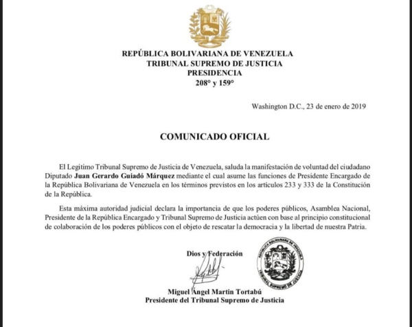 Previó al discurso desde la capital venezolana, el Tribunal Supremo de Justicia emitió un posicionamiento en el que acusó a la Asamblea Nacional de ursurpar las competencias del Ejecutivo e hizo un llamado al Ministerio Público a “determinar las responsabilidades”.