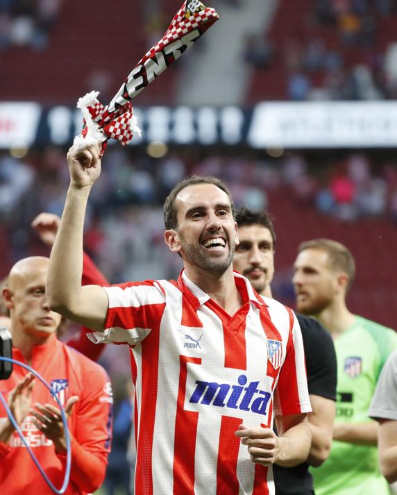 Y los dos lo hicieron con algo en común: dijeron adiós a la afición, sobre el césped, y con dos camisetas antiguas del Atlético de Madrid. Godín con una de finales de los 80 (la que llevaba la publicidad de Mita) y Juanfran con una de principios de los 90 (con Marbella en el pecho, la de las finales de Copa en el Bernabéu). Y hay un ‘culpable’ de esto: Jesús Ruiz.