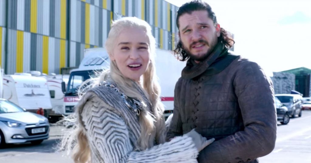 Parece que todo está perdonado entre Dany y Jon después de todo lo que pasó en la final. Aquí podemos ver a los dos acomodándose juntos en lo que podría ser la imagen detrás de escena más adorable de todos los tiempos. Los actores que interpretan a los amantes de Targaryen, Kit Harington y Emilia Clarke, son verdaderos compañeros en la vida real y tuvieron dificultades para filmar sus escenas de amor por eso. Según Clarke, Harington fingiría vomitar en todas partes cuando tenían que filmar una escena romántica y los dos se reían y reían todo el tiempo.