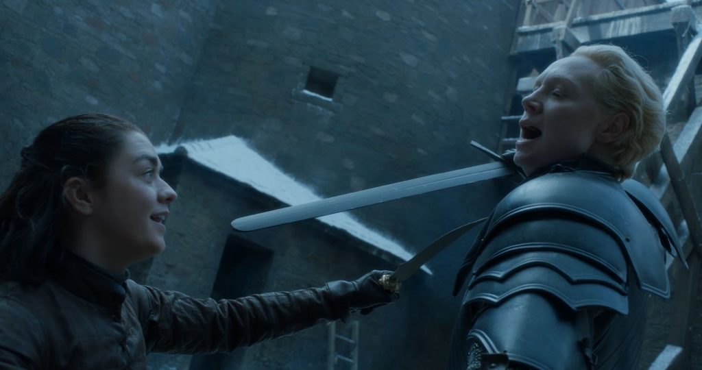 Esta lucha consistió en el intenso choque de espadas y el sangriento combate cuerpo a cuerpo, con Brienne ensangrentada arrancando la oreja de The Hound con sus dientes. Mientras sobrevivió milagrosamente, Brienne aún tiene el honor de ser el único guerrero que derrotó a The Hound en combate.
