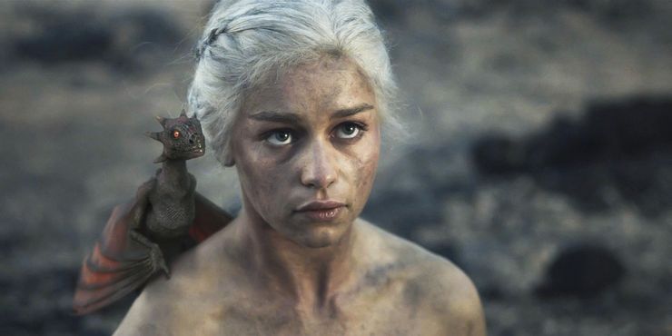 Daenerys coloca sus huevos de dragón en la pira funeraria de Khal Drogo y le ordena a Ser Jorah que ate a Mirri Maz Duur a ella. Ella se declara la Reina de su nuevo Khalasar y promete protegerlos ante cualquier peligro. Mientras todos se hacen a un lado, ella camina sin miedo hacia la pira y, al amanecer, Jorah y su Khalasar la encuentran ilesa con tres dragones bebés aferrados a ella. La escena de la eclosión del dragón establece el tono para el personaje de Daenerys y los espectadores saben que no se debe jugar con ella.