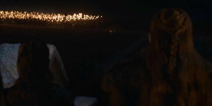La alianza de ejércitos vivos que luchan por Invernalia (y la vida en todas partes) tuvo un buen comienzo con Melisandre encendiendo las Arakhs (las espadas dothraki). Conocida como la historia principal de la serie, “La larga noche” tuvo lugar en Invernalia.