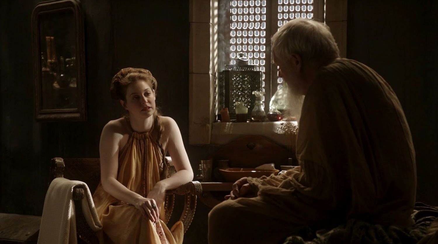 Sin embargo, no era Margaery lo que Joffrey encontraba atractivo, sino la posibilidad de que ella pudiera entender su crueldad desviada. El arma se había convertido en una extensión del propio Joffrey al comienzo de la temporada 3. Joffrey era más peligroso cuando se sentía castrado y, como no poseía fuerza ni destreza física, tenía que confiar en la sumisión de sus víctimas. En los momentos finales de “The Climb” de la temporada 3, el cuerpo sin vida de Ros cuelga de una cama atravesada por varias flechas. Podría considerarse el resultado de que Joffrey llegara al clímax después de todos esos meses simplemente torturando a Ros.