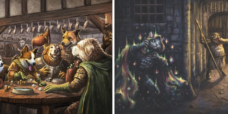 los Reinos de Pugmire Los juegos de rol de mesa usaban una versión modificada del Calabozos y Dragones Reglas de la quinta edición para contar historias sobre una Tierra en el futuro lejano heredada de una humanidad desaparecida por animales domésticos sensibles y genéticamente elevados. En el original Pugmire RPG, el jugador asume el papel de heroicos perros sensibles que recuperan las reliquias de las ruinas de civilizaciones humanas caídas hace mucho tiempo, se defienden de las fuerzas demoníacas de los “Invisibles” y tratan de “Ser un buen perro”. los Monarquías de Mau spin-off se centra en cambio en los gatos sensibles de la Pugmire mundo, que pertenecen a una cultura impregnada de intrigas políticas, una reverencia hacia la nigromancia y la creencia espiritual de que cada gato pasa por un ciclo de reencarnación con “Nueve vidas” en total.