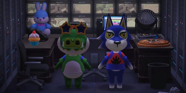 El usuario de Reddit arterialrainbow publicó imágenes que muestran su Cinco noches en freddy’s-restaurante temático en el Cruce de animales subreddit. En la primera foto, seis Cruce de animales Se ve a los aldeanos de pie frente a un escenario con una cortina roja en una habitación con paredes a cuadros en blanco y negro. Curt, Audie, Twiggy, Hopkins, Grizzly y Judy posan alrededor de una mesa llena de pizza y representan a los animatrónicos hostiles. Otra imagen muestra Animal Crossing’s Boots y Lobo en la sala de videovigilancia. Una mirada más cercana a la sala principal de arterialrainbow revela cámaras de seguridad en las paredes de la habitación.