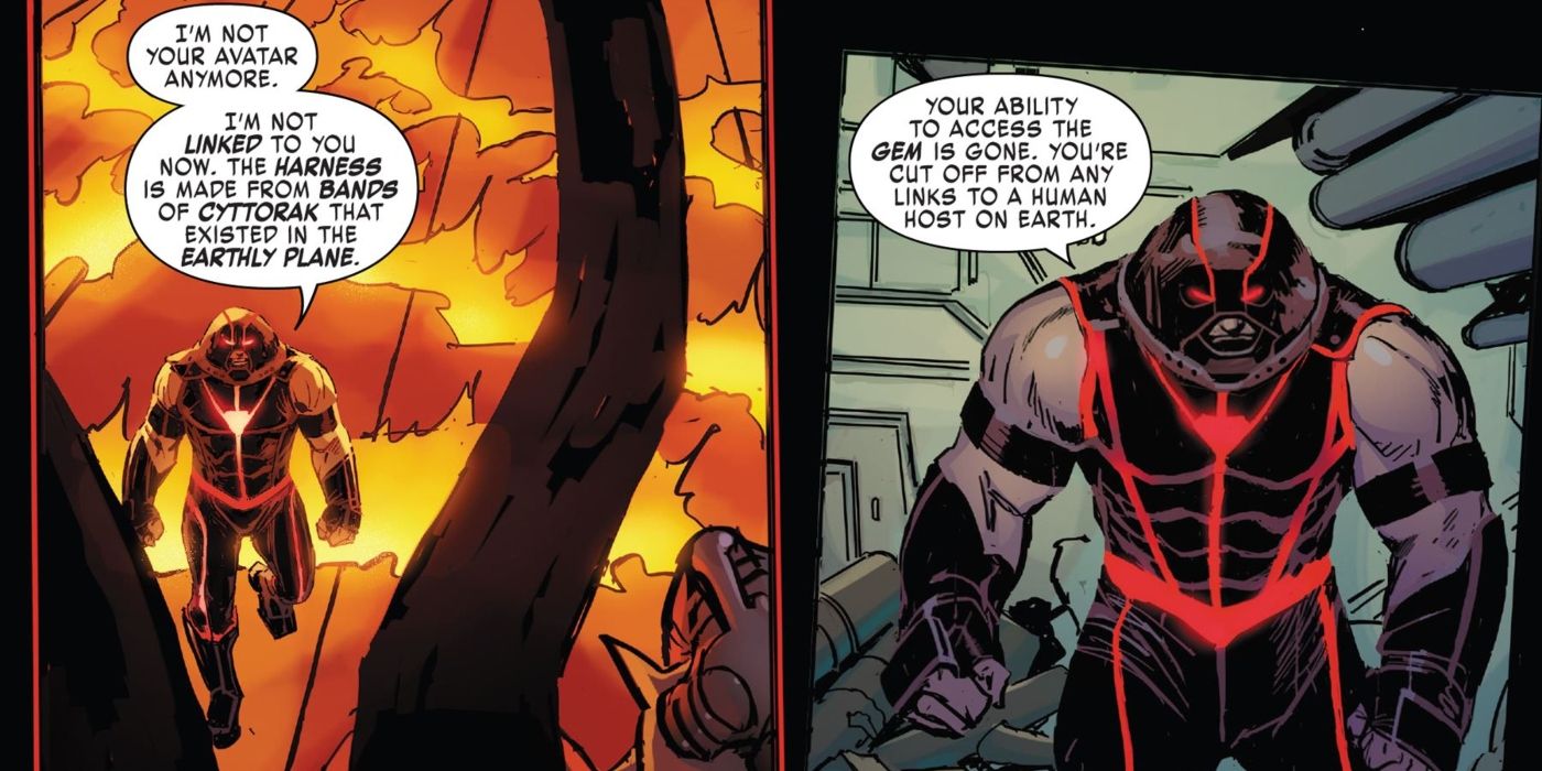 Por supuesto, es posible que el Amuleto de Cyttorak pueda operar fuera de la influencia de Cyttorak, y sea una especie de agente neutralizante para la Gema Carmesí directamente, lo que significa que aún funcionaría contra el Juggernaut, incluso después de su reciente redención. Dado que existe en una realidad completamente diferente (Tierra-20051, para ser precisos), es imposible saberlo, pero lo que los fanáticos sí saben es la reacción que tuvo en Juggernaut solo en este número, donde el Amuleto de Cyttorak resultó ser el giganteEs kriptonita.
