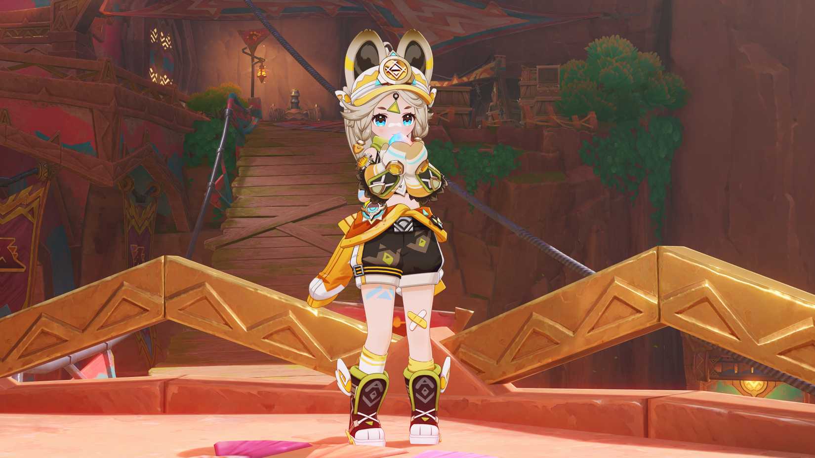 El mejor ejemplo que puedo dar de ese dinamismo sin filtros es el Graffiti Challenge que pudimos jugar durante nuestra cita práctica en la Gamescom 2024. El evento me encargó comprobar las regiones que habita cada tribu y luego interactuar deliberadamente con regiones más pequeñas, a veces menos apreciadas. Impacto de Genshin elementos para completar algunos de los requisitos. Por ejemplo, había una cámara específica de Natlan que tomaba fotografías de la vida silvestre local mientras hacía diferentes cosas, como rodar sobre su espalda o permanecer inmóvil, con tareas que requerían variedad de poses. Otro simplemente requería encontrar un punto de vista, otro elemento básico menos buscado pero fantástico. Genshin construcción del mundo.