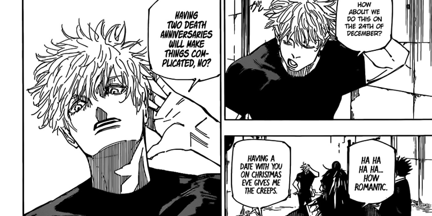 “/> Gojo eligió la fecha para la batalla después de que fue abierto en el capítulo #221 de Jujutsu Kaisen, la razón de su elección fue que no quería que Geto tuviera dos aniversarios de muerte y quería descansar su cuerpo derrotando a Kenjaku el mismo día en que murió Geto. Dado que Gojo tomó su decisión inmediatamente después de escapar del reino de la prisión, Gojo no habría tenido conocimiento del impacto que tendría su decisión aparentemente intrascendente ni de la existencia de Higuruma.
