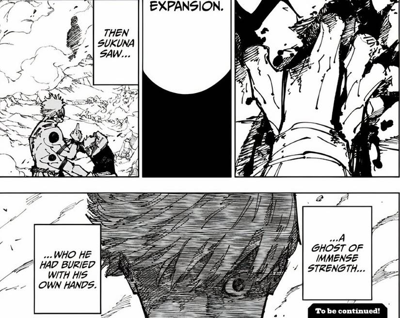 En el último capítulo, aunque breve, Sukuna se adapta rápidamente a la llegada de Yuta al campo de batalla en el cuerpo de Gojo. Sukuna no pierde el tiempo ajustando su dominio e incluso usa el Azul de Yuta contra él para aumentar la velocidad de sus movimientos. Sukuna también deduce rápidamente que Yuta y los otros hechiceros no tienen ningún conocimiento de lo que sucedió dentro de los dominios durante su batalla contra Gojo simplemente al ver la reacción de Yuta cuando él usó la Amplificación de Dominio para evitar el Infinito.