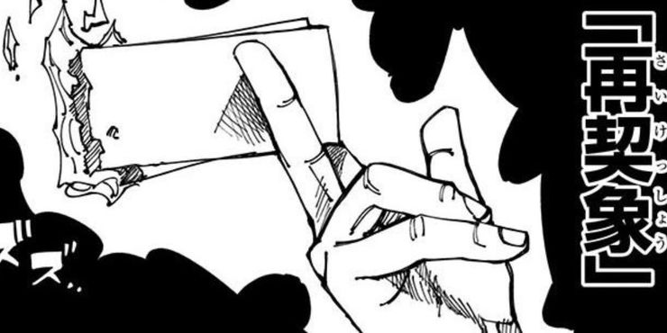 Posiblemente una de las técnicas malditas más extrañas, la recreación contractual permite al usuario recrear los términos de cualquier contrato quemándolo con energía maldita. Debido a que un recibo es un contrato de venta, un hechicero que use esta técnica puede invocar cualquier objeto escrito en un recibo.