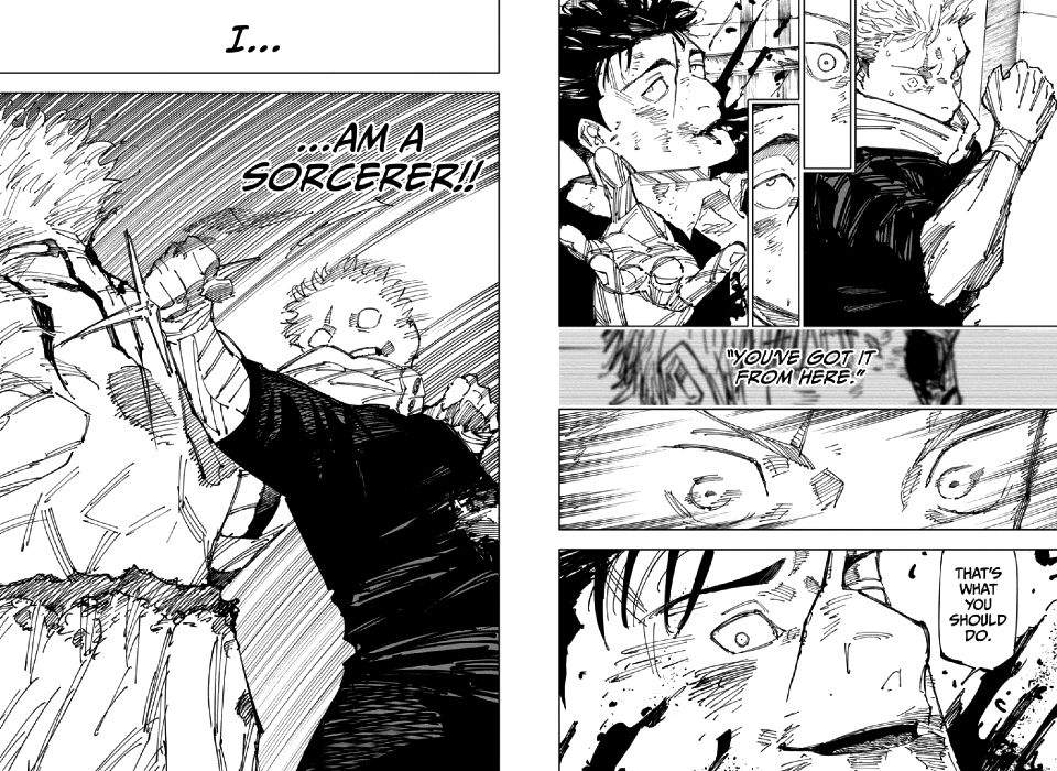 - Higuruma le pasa la antorcha a Yuji, dándole el poder de matar a Sukuna en el último capítulo de Jujutsu Kaisen.