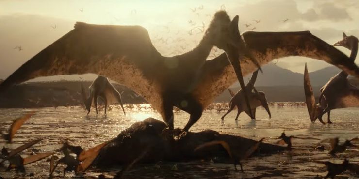 Los pteranodones voladores se introdujeron por primera vez en Parque Jurásico III y volvió en los dos primeros mundo Jurasico películas, ayudando de manera memorable en la muerte grizzly de Zara, pero no pueden hacer frente al Quetzalcoatlus más grande. La bestia alada es un dinosaurio alado aún más grande y aterrador que los pteranodones incluso tratan como un alfa.