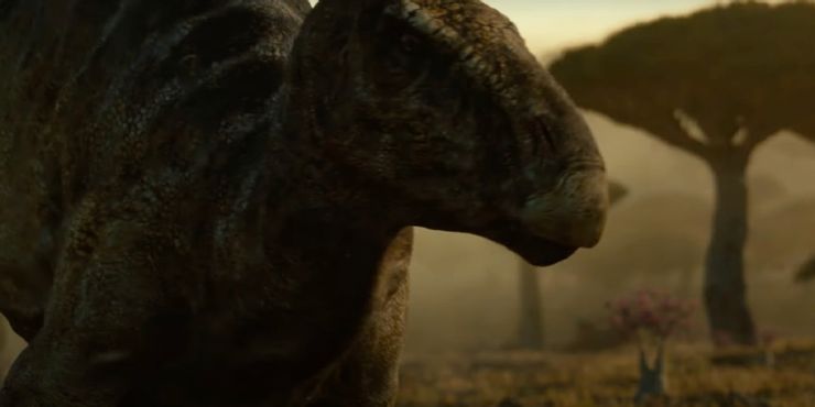 El Iguanadon es otro gran herbívoro que debuta en Dominio del mundo jurásico y se lo ve brevemente en el prólogo del Cretácico de la película antes de la revelación del nuevo oponente de batalla del depredador del ápice, el T-Rex emplumado.
