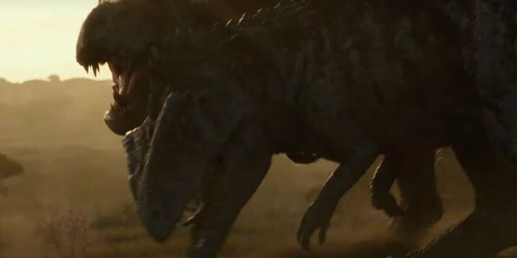 Y, por último, la estrella del espectáculo, antes de pasar al ataque moderno contra el autocine.Mundo Jurásico: Dominio también presenta un enorme depredador nuevo en el ápice en el Gigantosaurus. En un tráiler, el Dr. Malcolm comentó sobre su enorme tamaño.