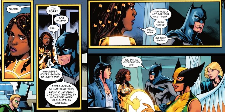 Si bien los raros elogios y elogios de Batman definitivamente son una victoria para Naomi, el hecho de que Bendis solo escribió alrededor de una semana y media de la continuidad de DC para la Liga de la Justicia es bastante extraño. Abarrotar la mayor parte de sus aventuras en una semana es ciertamente una ruta extraña, lo que garantiza que los héroes de la Liga no tengan tiempo para sus propias vidas durante este período particular de 7 días como héroes individuales. Dada la lista completa de amenazas con las que la Liga tuvo que lidiar en sucesión, es bueno que tuvieran aliados para unirse a ellos en la batalla, como las fuerzas de United Planets, Checkmate y Justice League Dark.