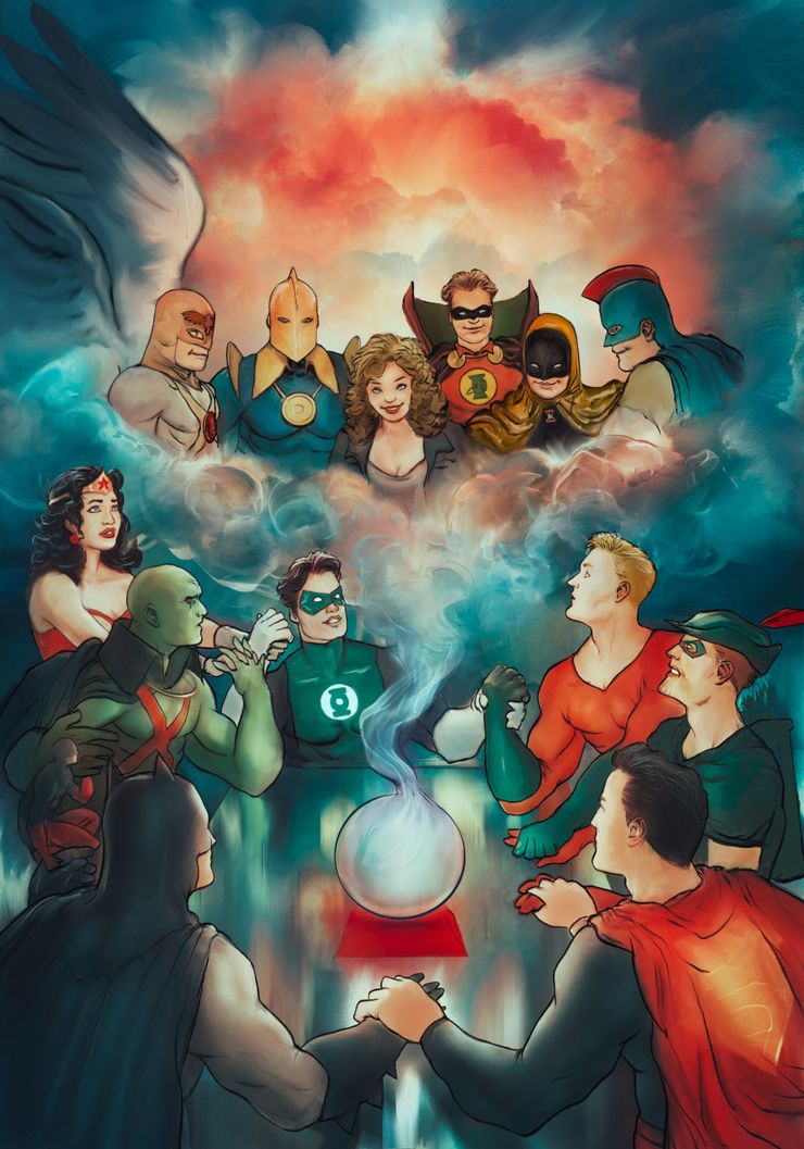 En una impresionante nueva portada de homenaje protagonizada por la Liga de la Justicia, el equipo imagina el regreso de la Sociedad de la Justicia de América.