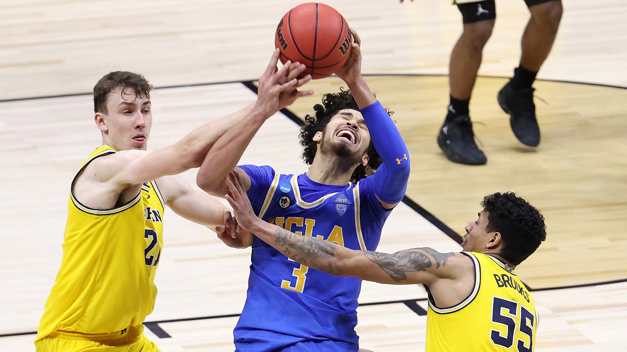 Los Wolverines (23-5) fallaron sus últimos ocho tiros, incluido un triple de Mike Smith con un par de segundos para el final y otro de Franz Wagner en el timbre, enviando a los Bruins (22-9) volando desde la banca en forma salvaje. celebracion.